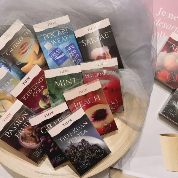 葡萄, 西瓜, 百香, 荔枝, 蜜桃, 鳳梨, 芭樂, 蘋果, 哈密瓜, 藍莓, 鐵觀音, 檸檬茶, 礦力, 棟檸可樂, 沙士, 薄荷, 原味, 綠豆, 龍井, 冰棍, 南極冰, 蔓越莓, 水梨